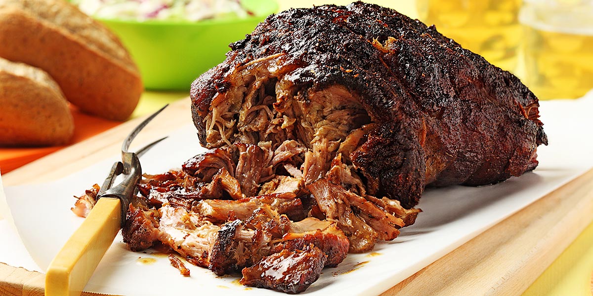 - Close lid and cook roast over indirect heat (“off” heat side) until meat is fork tender and almost falling apart, about 3 ½ hours. Cover roast with foil if getting too dark.