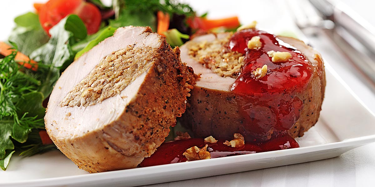 Fruit Stuffed Pork Tenderloin with Honey Wine Sauce