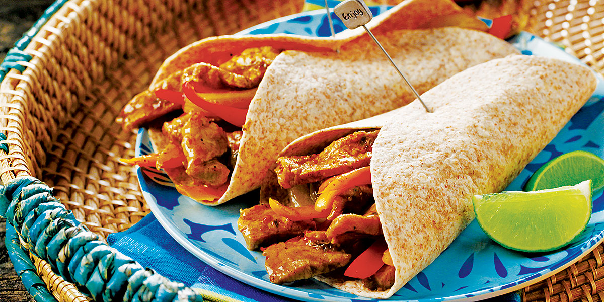 - In large skillet, heat oil over medium-high heat. Sauté pork strips with onion and peppers until vegetables are tender crisp, 4-5 minutes.
