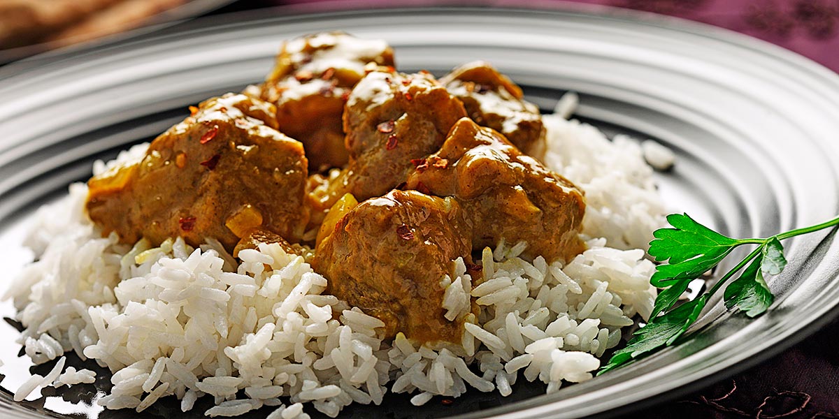 - Combine flour, cumin, coriander, turmeric, cardamom, cinnamon, salt and pepper. Sprinkle half over pork cubes; toss to coat well.