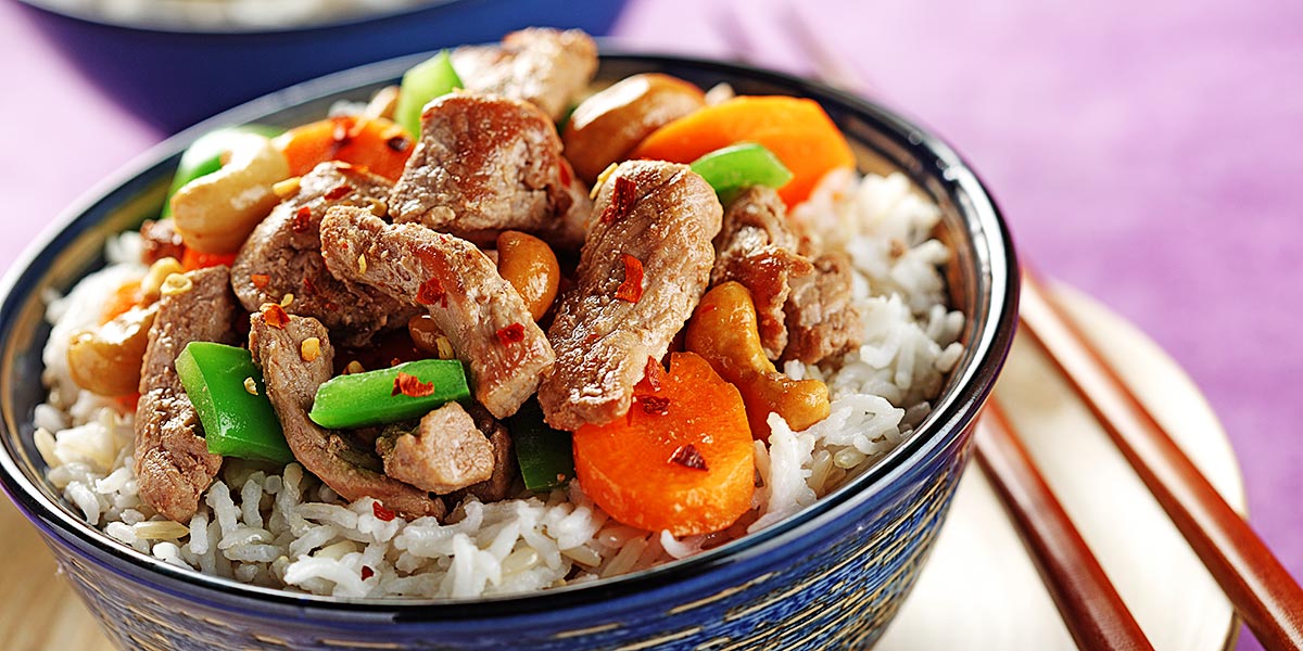 - In nonstick skillet or wok, heat oil over high heat. Add pork and stir-fry until pork begins to brown, 3-4 minutes.