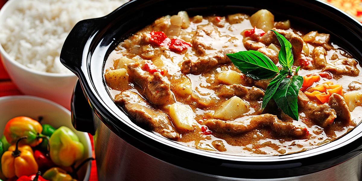 - In large measuring cup, combine coconut milk, broth, curry paste and fish sauce. Pour into slow cooker.