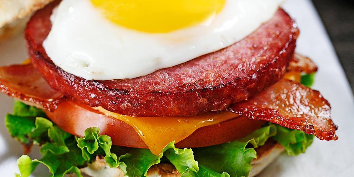- To assemble sandwich, layer lettuce, tomato and cheese over condiments. Add bacon and warm patty. Top patty with fried egg and season with pepper according to taste.